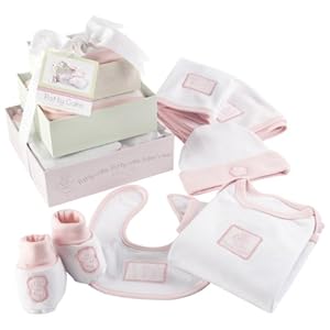 Little girls giggle and smile once they play "patty cake" with mommy and daddy, this also impressive baby gift set brings the beloved interactive nursery rhyme to life. The enchanting tower of graduated boxes features the entire nursery rhyme, introduced by an adorable babyórolling pin in hand--wearing a chef's hat as well as an apron marked "baby." Except for that pink receiving blanket, the layette merchandise is white with pink trim and possess embroidered accents.
